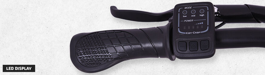 The controls and the LED display can be a single unit or two separate ones placed for easy visibility and access on the handlebar. The information displayed is the battery power indicator and the automatic PAS levels.