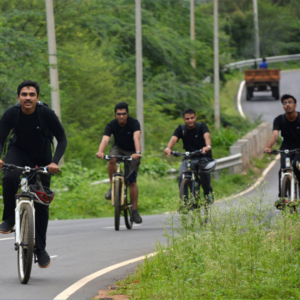 The terrain is mostly flat with limited ascends and off-roading, The route is serene and forested for the most part with lots of trees and fields providing you some respite from the sun and polluted air. Mentor cyclists will accompany you throughout the jpurney and there are at least 3 stopovers for you to recharge your batteries should you feel tired.