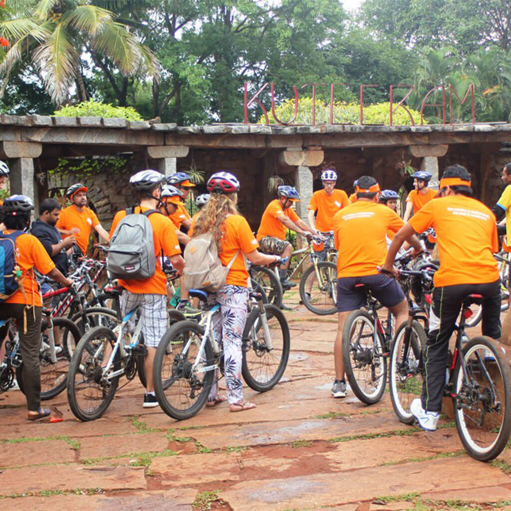 You get to experience two things– a thoroughly enjoyable cycle ride testing your metal cycling distances and a scenic tour to remember. The route starts from Sankey tank -BEL Kalyana Mantapa gate – Jalahalli – Nrityagram – Taj Kuteeram and back again to the starting point covering approx. 45 kms to & from.
