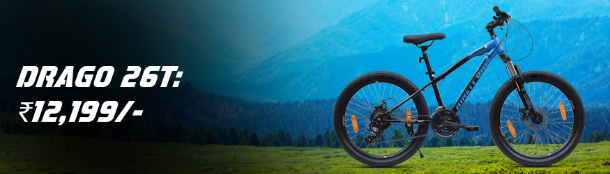 The DRAGO 26T is designed for those seeking comfort and ease of handling during their rides. It features a 17" Hi-Tensile Steel Frame, fast & dynamic disc brakes, and the added comfort of 91 TUF SHOX Suspension. This bike is suitable for riders aged 10 and above, with a height range of 5' to 5'7".
