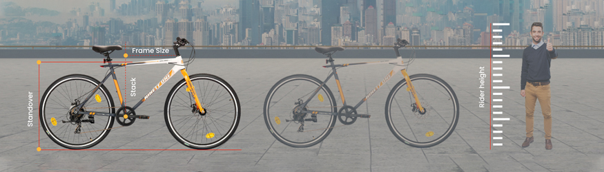Just like most bicycles, hybrid cycles are measured by their frame size, which refers to the distance (in inches) from the centre of the front chainring to the top of the frame at the seat tube. You can find frame sizes in XS (extra small), S (small), M (medium), L (large), and XL (extra-large). These can also be defined in inches, ranging between 14 and 18.