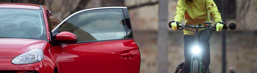 2. If your route takes you through roads that are not well lit or riding post sundown, you need to have a front white light and a blinking backlight. You can also add reflective stickers and tapes, which would alert other vehicles to your presence.