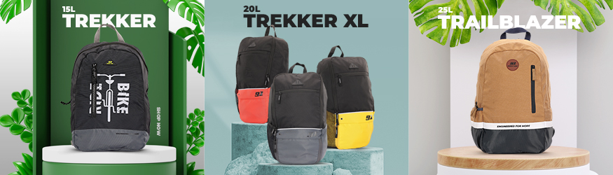 - Backpack: A backpack is a bag worn on the back, usually with shoulder straps and a waist strap. It is useful for hands-free travel and comes in three sizes: 15L, 20L, and 25L. Our backpacks come in various colours and designs to suit everyone's tastes and personal preferences. Of course! Who likes to miss out on style just for a functional bag? Our backpacks are the most practical and chic additions to your cycling, hiking, or trekking adventures.