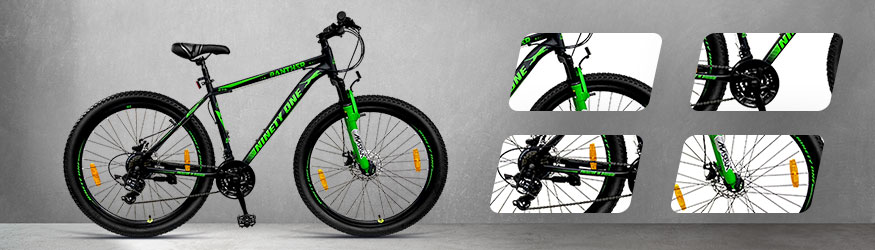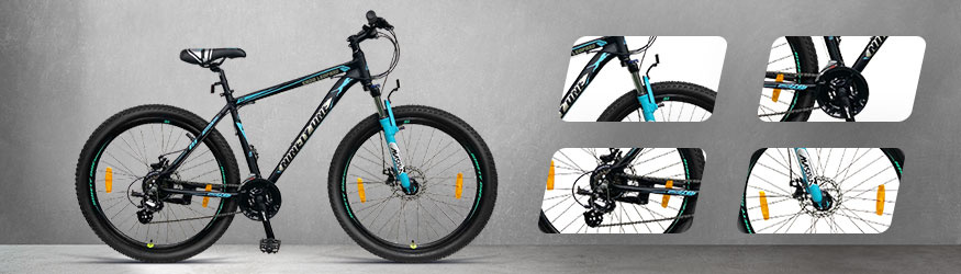The Panther 27.5T is fierce as a big cat. It justifies the feline it is named after and promises grace, style, and a smooth experience even on the roughest of the terrains. The Panther 27.5Ts style and performance quotient can be amplified with a mudguard paid and a bottle cage. This bicycle comes in beautiful turquoise and green colours and will make you its fan from the very first ride.