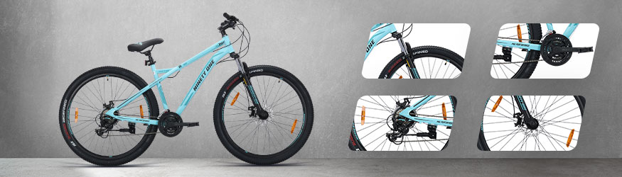 The key feature of the snow leopard is its lightweight aluminium alloy frame. It allows you to overcome all the obstacles that await you on your off-road adventure. The comfort of lock-in and lock-out suspension gives you the power to zoom through gravel roads without any discomfort. Moreover, the fierce looks of the bike and its sleek frame will definitely make you a fan of it. If you are not comfortable with the assembly of the bike, you can always opt for the 91 Cares feature which gives you the option of choosing doorstep assembly by one of the expert bike mechanics at 91 Cycles.