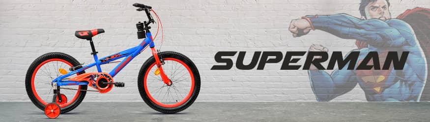 Safety features are at the core of these bicycles. The bike sports a full chainguard to ensure security to the young rider. The paintwork on the bicycle's body is non-toxic, keeping in mind the safety of your child. Along with the bike is a food-grade plastic water sipper which neatly fits into its bottle cage conveniently placed behind the seat. The Batman and Superman are built with rigid and secure V brakes, heavy-duty safety side supports, durable and robust frames made from high-tensile steel. The hi-traction wide tires with rust-free alloy rims increase safety. It has a quick-release clip for seat height adjustment to ensure comfort and perfect sizing.