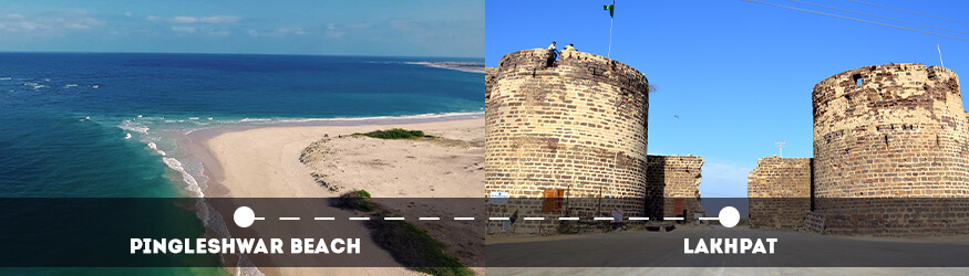 Detour Suggestion: Keen to visit Narayan Sarovar, a village and place of pilgrimage? If yes, your journey would now be 106 kilometers to Narayan Sarovar from Pingleshwar beach and then about 34 kilometers to Lakhpat.