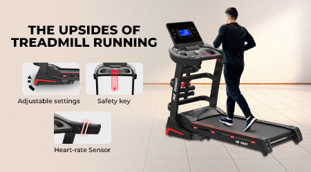 Treadmill running involves running on an automatic belt inside. It allows you to customize your speed, incline, and duration, as well as receive digital data like calories burnt, pace, and heart rate. It's a controlled atmosphere built for your convenience.