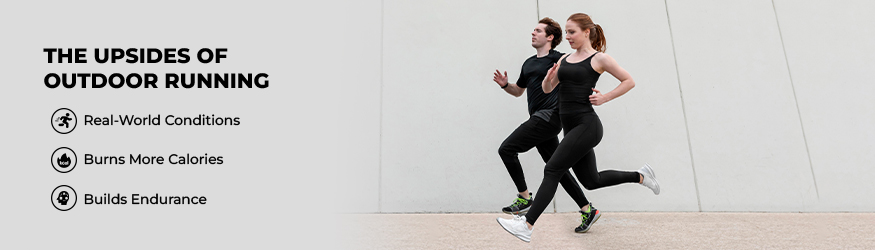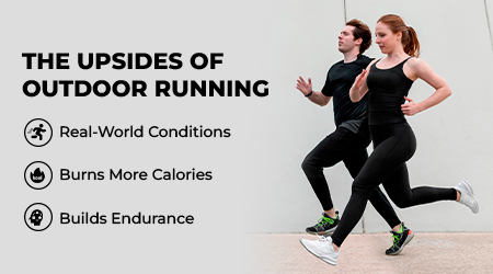 Outdoor running incorporates natural aspects such as wind resistance, varying terrain, hills, and weather, resulting in a more holistic exercise. These variables increase muscular activity while also improving balance and coordination.