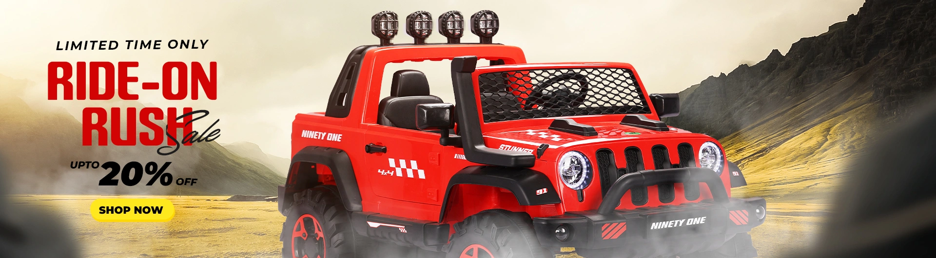 - Ninety One offers electric vehicles for all ages, from toddlers to pre-teens—ride-on jeeps, electric bikes, and more for endless fun!